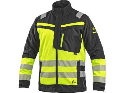 Blůza CXS NAOS HV, pánská, černá-žlutá Hi-Vis, reflexní pruhy, vel. 56Pánská výstražná blůza se segmentovanými reflexními pruhy o šíři 5 cm. Konstrukce 4-way stretch umožňuje roztahování materiálu ve všech čtyřech směrech a tím i snadný a volný pohyb. Blůza je na exponovaných místech vybavena doplňky z materiálu CORDURA®, rukávy s nastavitelnou manžetou, náprsní kapsou na zip a dvěma skrytými náprsními kapsami na zip, dvěma bočními kapsami na zip, tužkovou kapsičkou na levém rukávu, ventilací v zadní části a bočních částech pod rukávy, vnitřní kapsou na zip a síťovou prodyšnou podšívkou. V pravé náprsní kapse se nachází odnímatelné pouzdro na ID kartu. Doporučené použití: strojírenství, stavebnictví, lehký průmysl, automobilový průmysl, logistika, skladování, spedice, autoservisy, údržba, montáže, letecká a lodní doprava.
