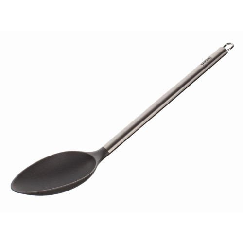 Lžíce 33 cm nylon + nerez. materiál: nylon + nerez Lžíce - moderní jednoduchý design vhodný do každé kuchyně. Materiál - nylon, tmavě černé barvy, držadlo vyrobené z nerezove oceli. Vhodné do myčky.