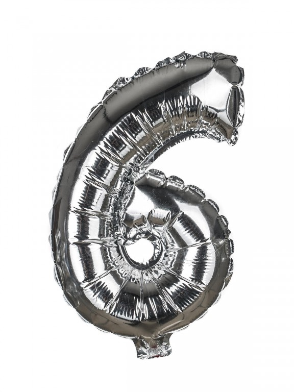 Balónek nafukovací fóliový číslo 6, je vysoký cca 30 cm, barevný mix: zlatá a stříbrná barva. Součástí výrobku je papírové brčko pro nafouknutí balónku a šňůrka pro zavěšení. Výrobek využijete na oslavě, zahradní párty, pikniku apod.