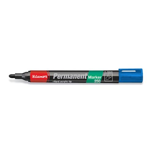 stopa hrotu: 2 - 3 mm kulatý hrot na dřevo, sklo, kov, keramiku, sklo, kůži neobsahuje xylén ani toluén modrý Permanentní popisovač LUXOR 250 modrý s kulatým hrotem lze použít na většinu povrchů.